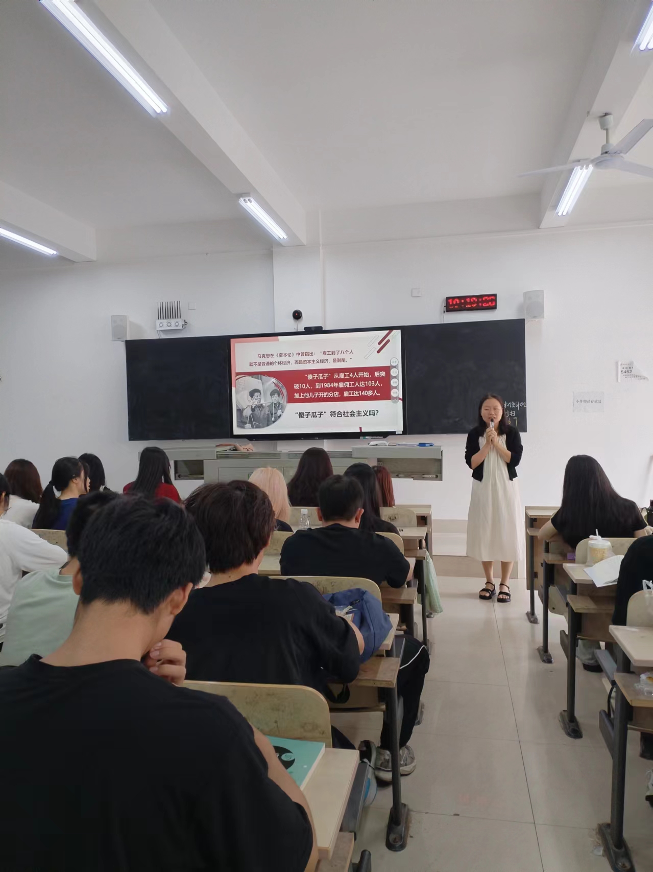 校领导们听取了马克思主义学院段晓丹老师讲授的《毛泽东思想和中国特色社会主义理论体系概论》课程。课上,领导们着重关注教师的教学内容和教学方法,观察学生的听课状态和学习情况。课后,校领导们与任课老师进行深入交流,详细了解教师在教学过程中遇到的困难和挑战,并就如何进一步激发学生学习兴趣、提高教学质量、提升教学效果进行指导。