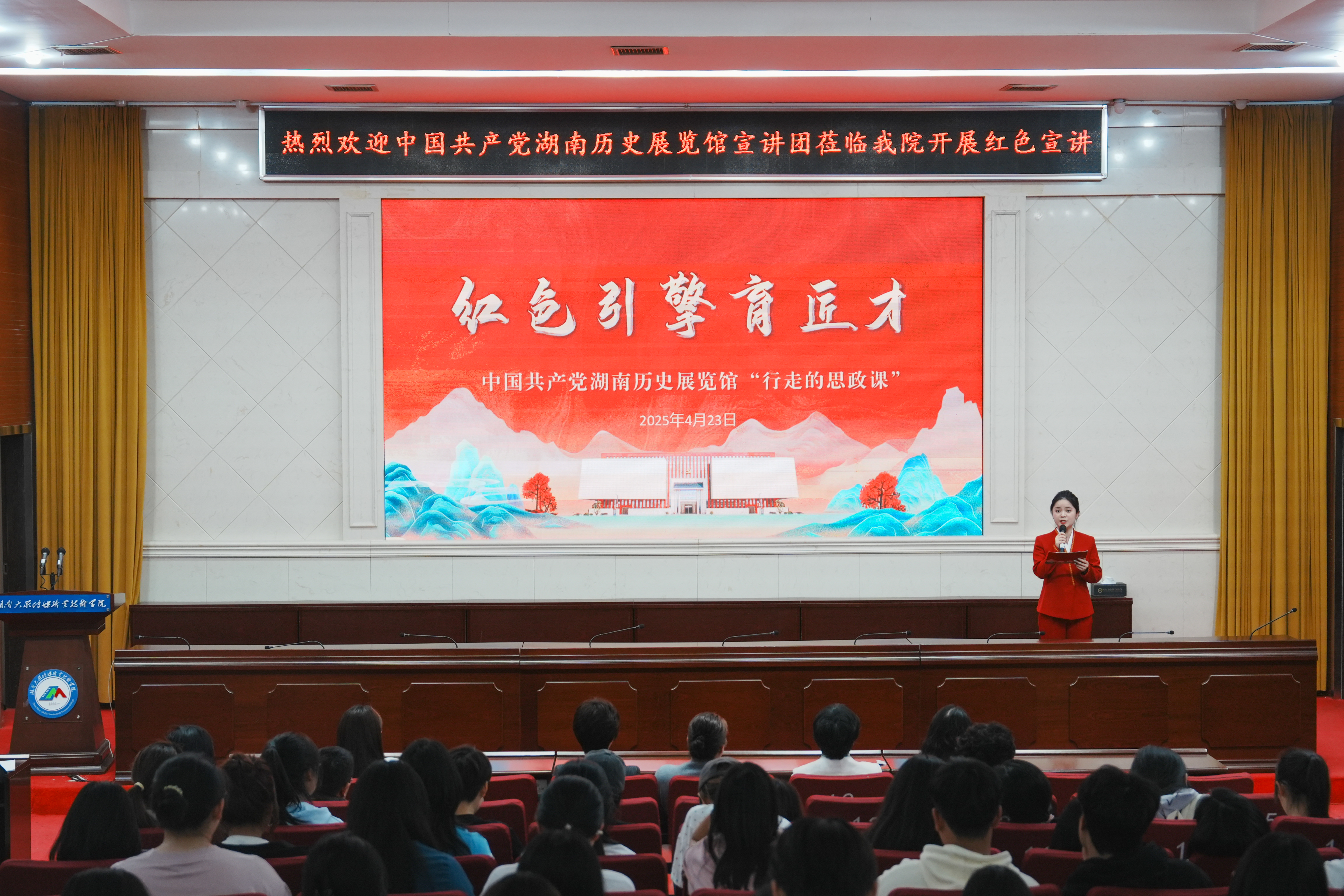 为了在青年学生中营造学党史、知党恩、跟党走的良好氛围,提升思政课的实效性,4月23日下午,湖南历史展览馆红色故事宣讲团走进湖南大众传媒职业技术学院,开展了一堂别开生面的大思政课。