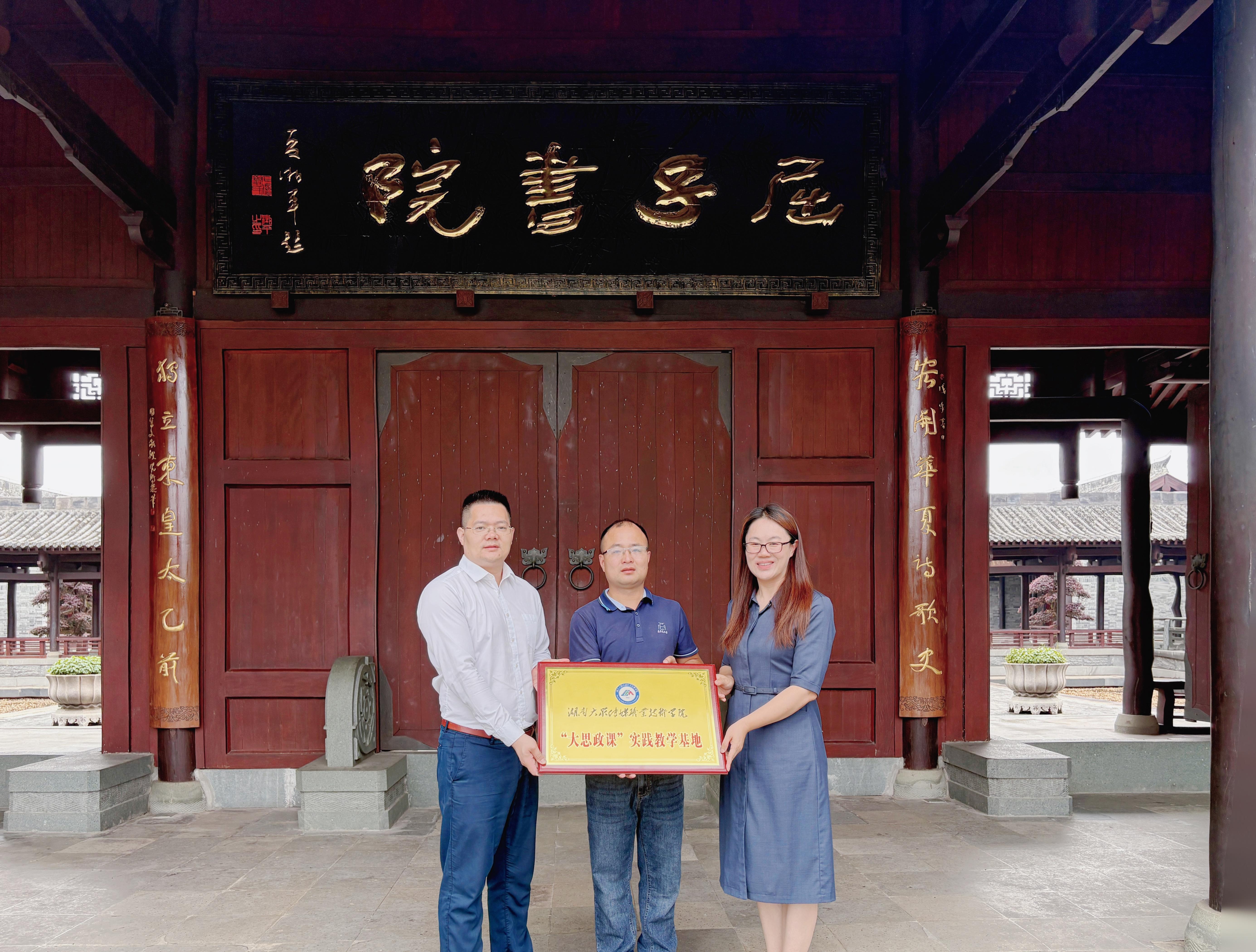为深入学习贯彻习近平新时代中国特色社会主义思想,将“思政小课堂”同“社会大课堂”相结合,马克思主义学院联合屈子文化园,共建“大思政课”实践教学基地。6月11日上午,马克思主义学院副院长刘爱国、陈帅与汨罗市芒果文旅有限公司副总经理龙昕在屈子书院举行签约授牌仪式。